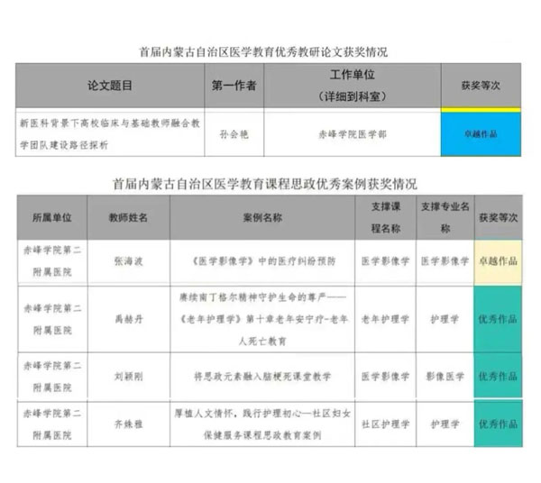 赤峰市肿瘤医院在自治区医学教育评选中喜获五项大奖