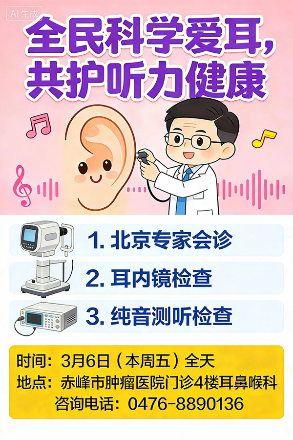 2026年3月3日是第27个全国爱耳日,主题为全民科学爱耳,共护听力健康。赤峰市肿瘤医院耳鼻喉科定于本周五(3月6日)举办义诊活动,特邀北京知名专家李希平教授坐诊,让赤峰市民免去奔波,在家门口就能看北京名医。